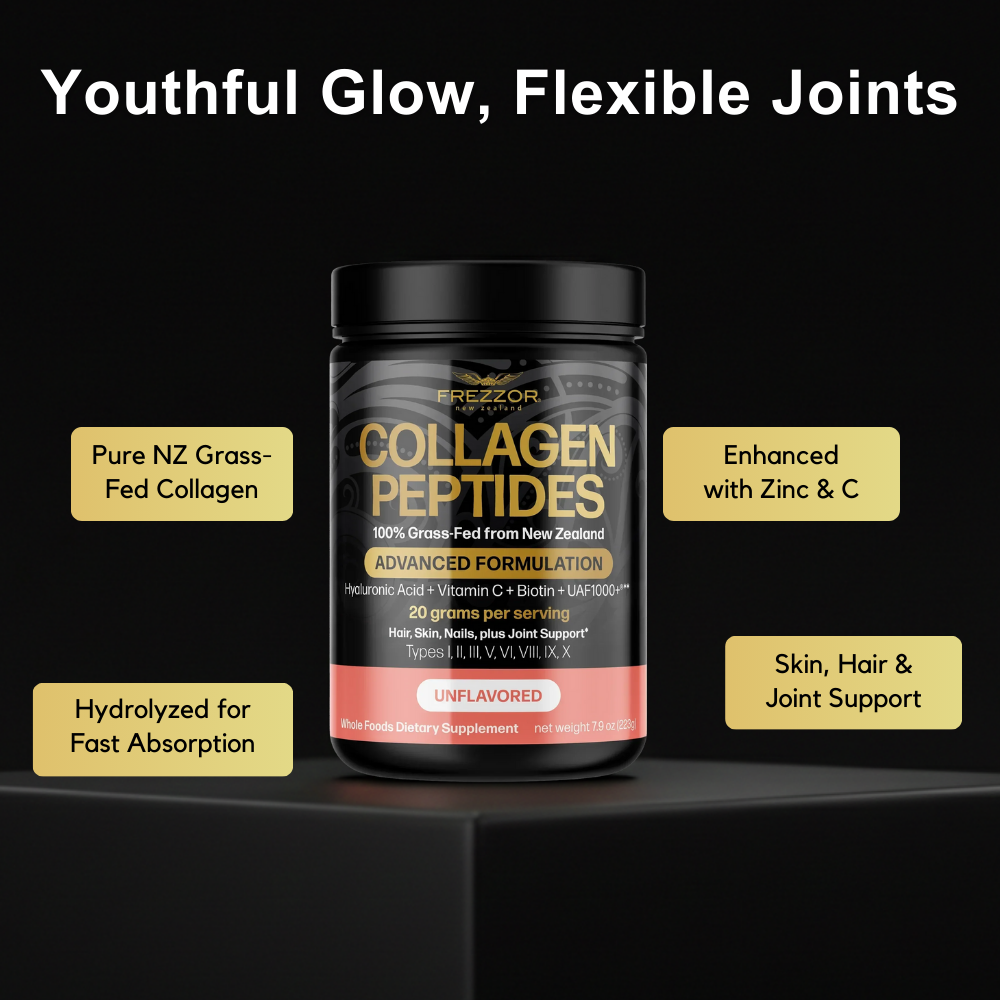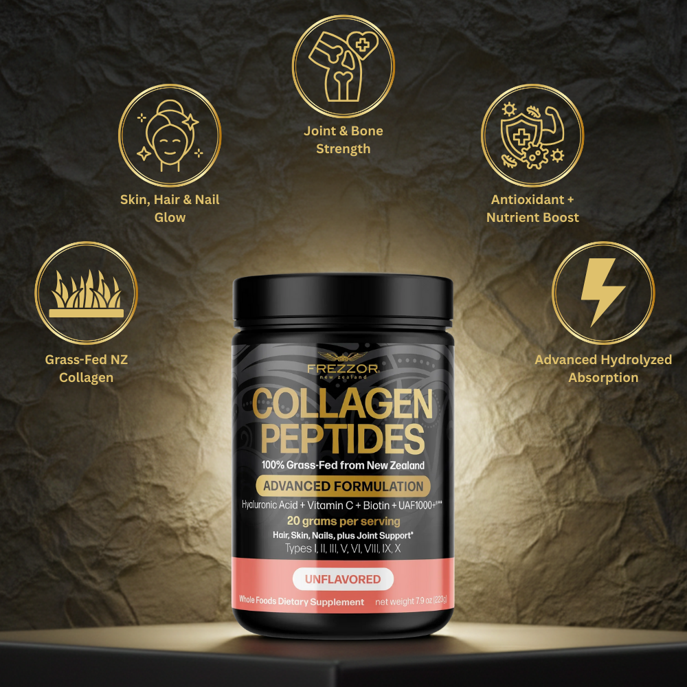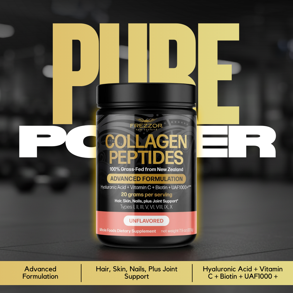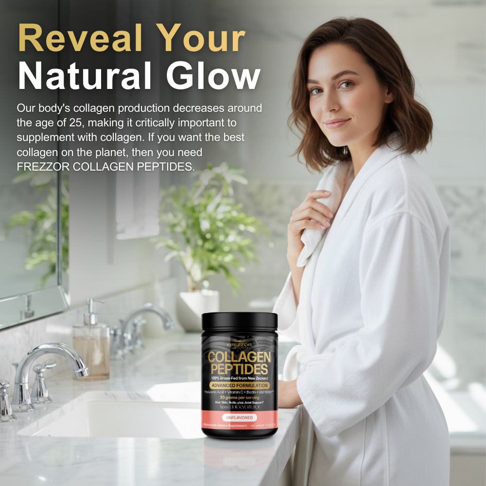 Our body's collagen production decreases around the age of 25, making it critically important to supplement with collagen. If you want the best collagen on the planet, then you need FREZZOR COLLAGEN PEPTIDES.