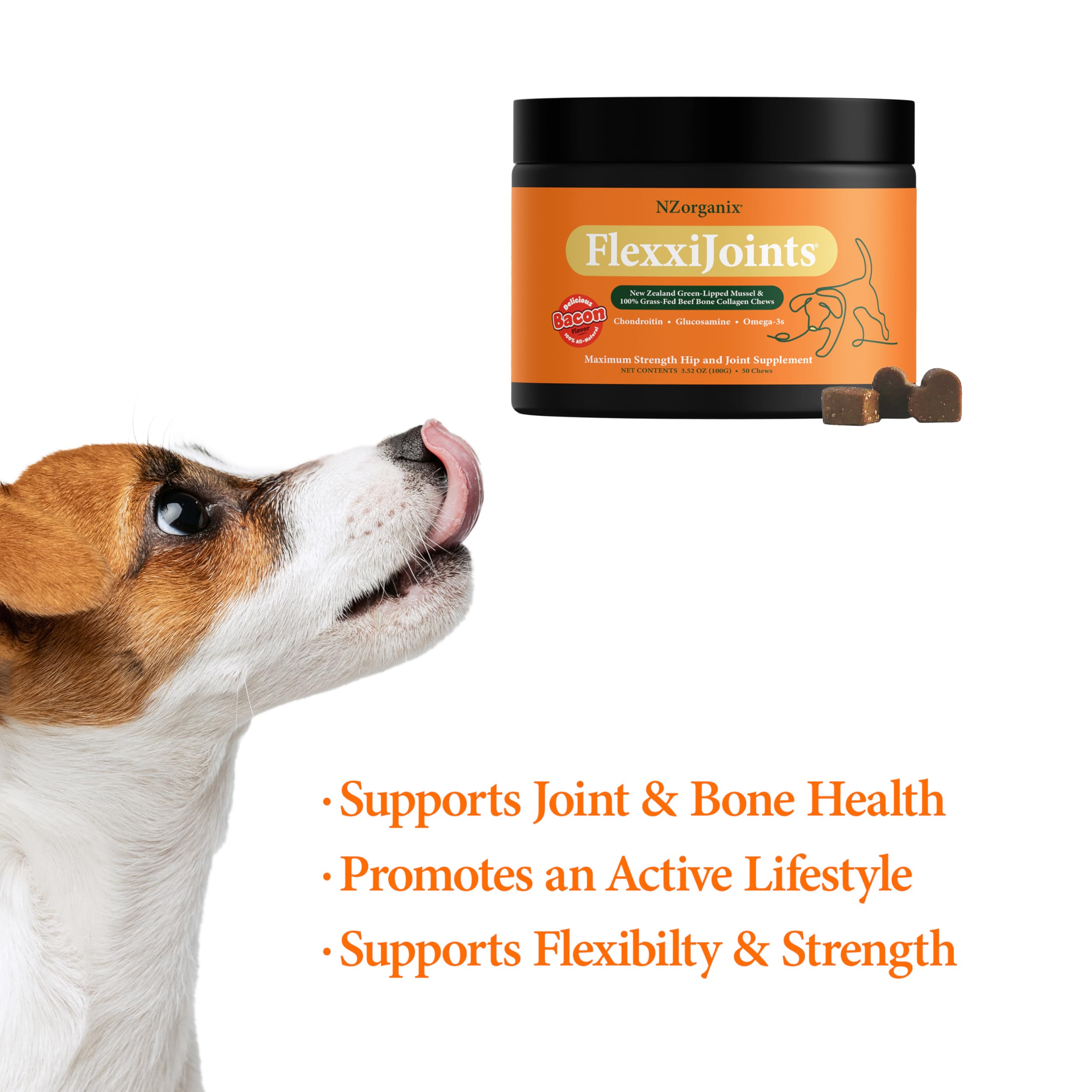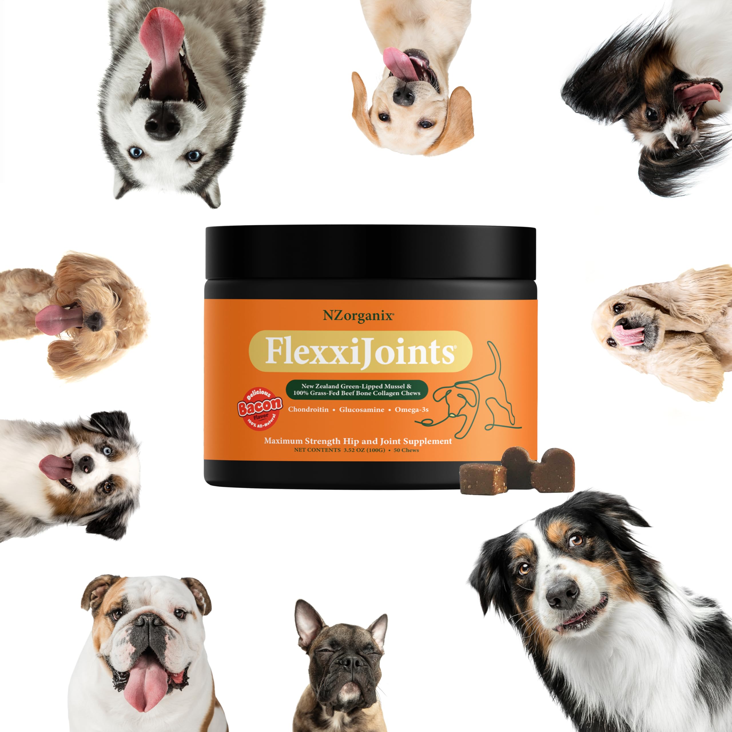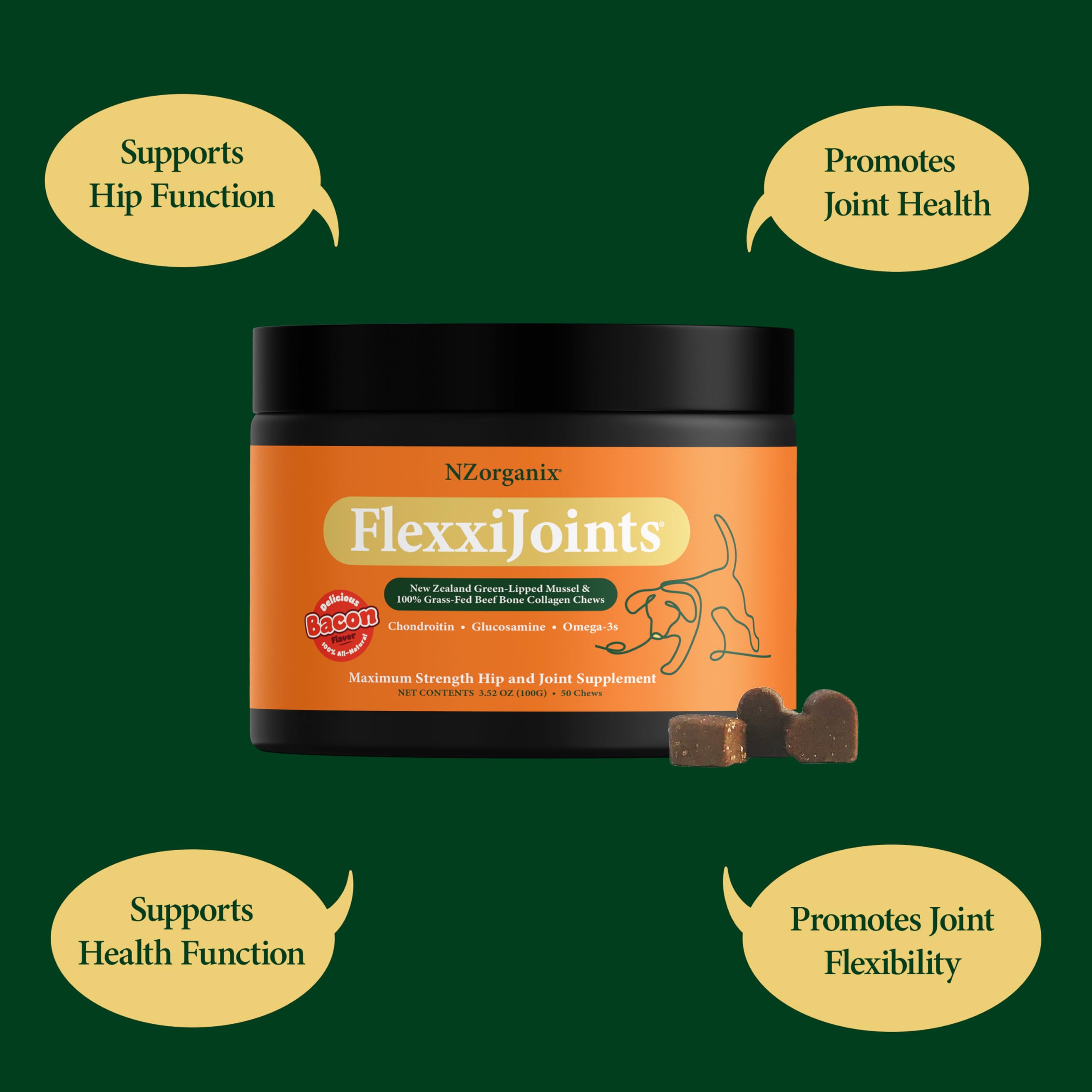 NZorganix FlexxiJoints Chews, 100% New Zealand Air-Dried Green Lipped Mussel Chews, Maximum Strength Hip and Joint Supplement.