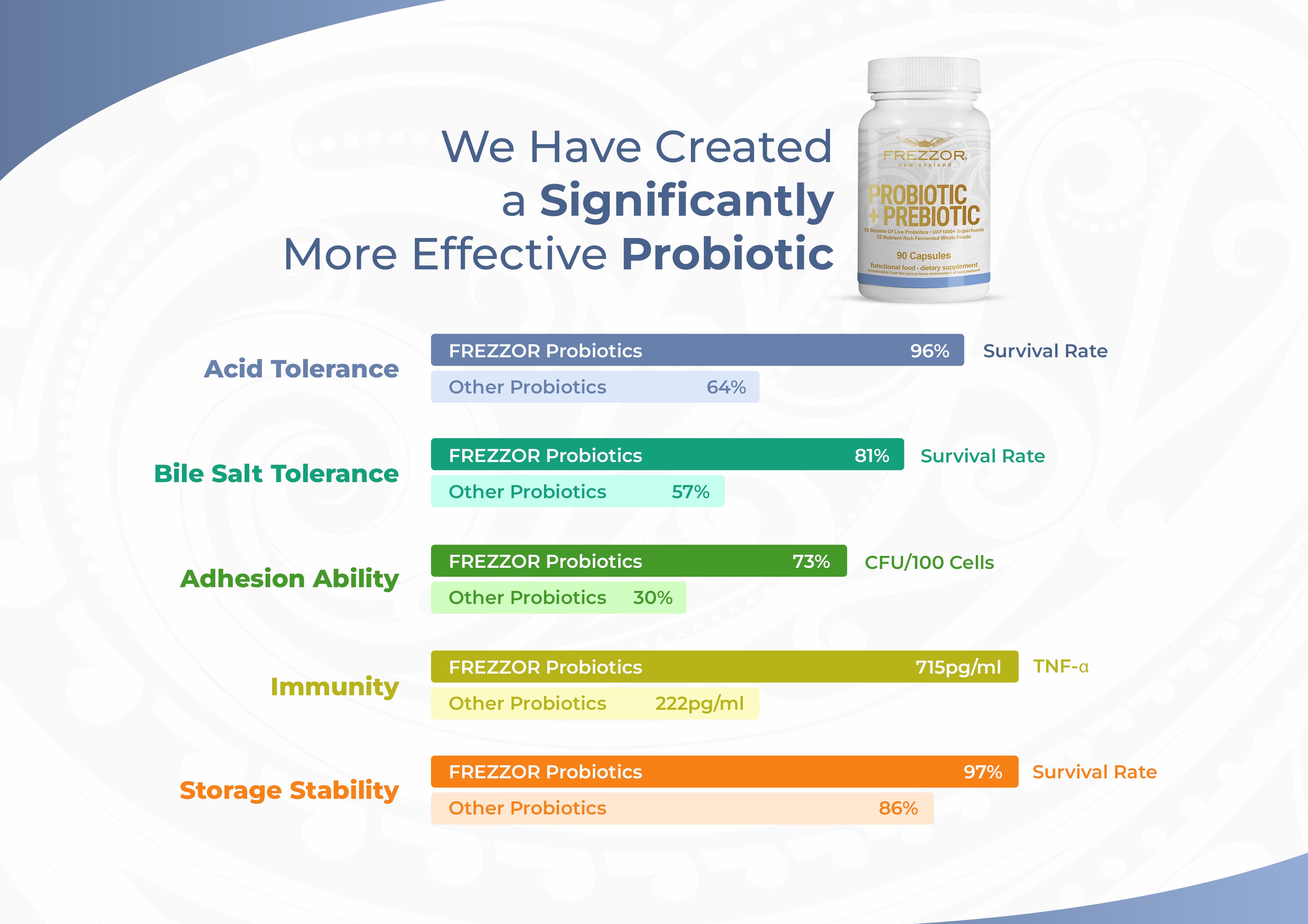 Our FREZZOR PROBIOTIC +PREBIOTIC offers the following probiotic benefits