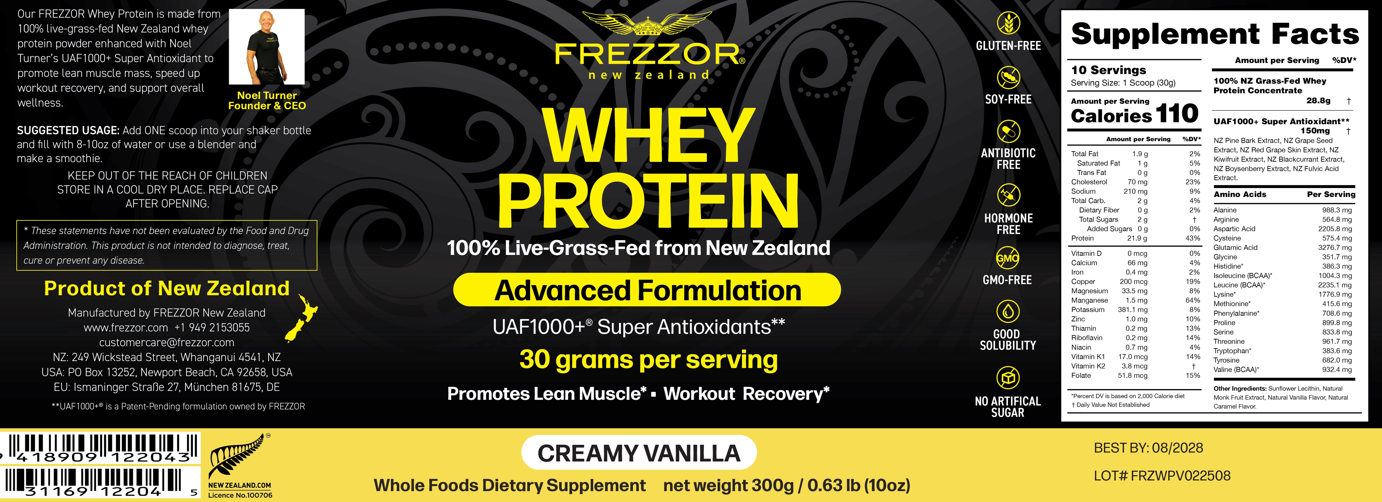 Our FREZZOR WHEY PROTEIN POWDER is free from gluten, hormones, genetic engineering and antibiotics.