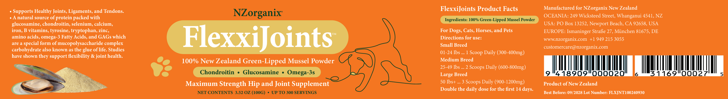 NZorganix FlexxiJoints, 100% New Zealand Air-Dried Green Lipped Mussel Powder, Maximum Strength Hip and Joint Supplement.
