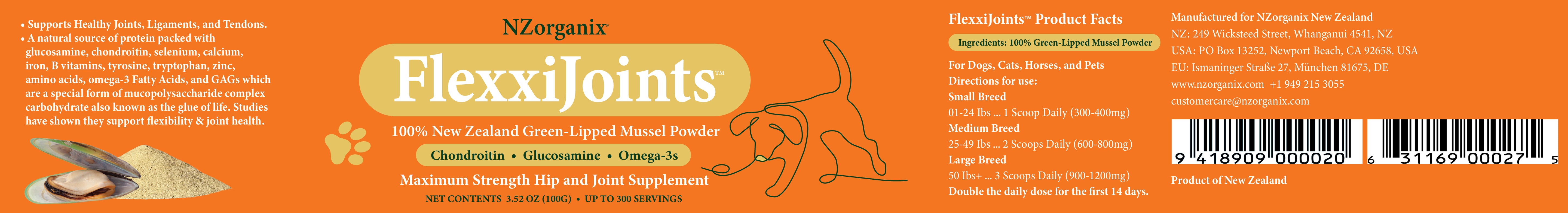 NZorganix® FlexxiJoints™, 100% New Zealand Air-Dried Green Lipped Mussel Powder, Maximum Strength Hip and Joint Supplement.