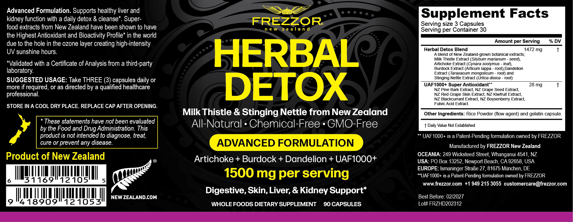 FREZZOR Herbal Detox Capsules is a powerful and effective botanical formula that combines the best natural ingredients to optimize the body's detoxification by supporting both liver and kidney function synergistically.