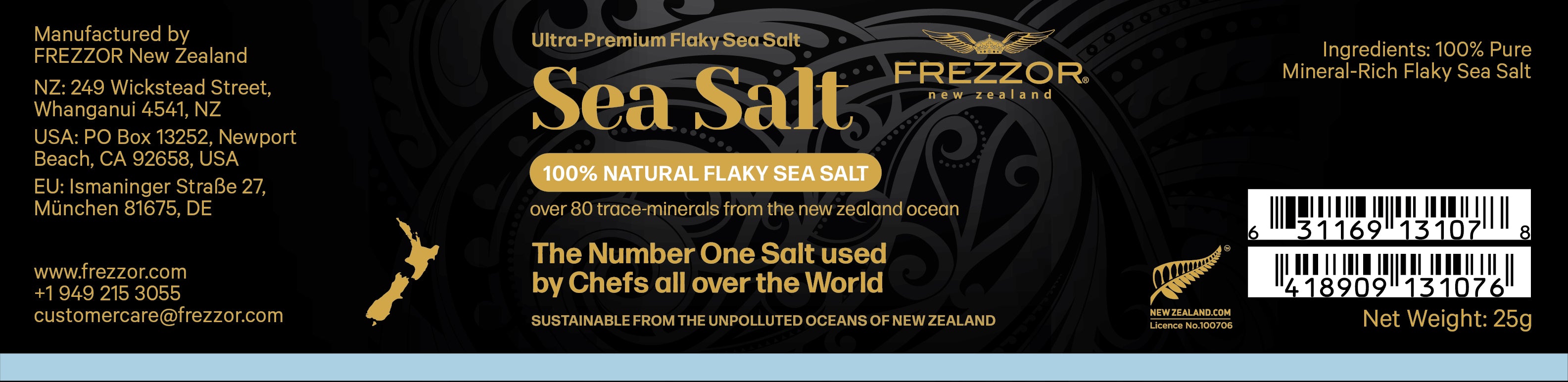 We offer FREZZOR Mineral-Rich Flaky Sea Salt in both a practical bag for everyday cooking at home (210 grams) and in a small practical jar (25 grams) to take along in your handbag because we want to make it possible for our customers to season their food with a guaranteed natural salt even when they visit a restaurant.