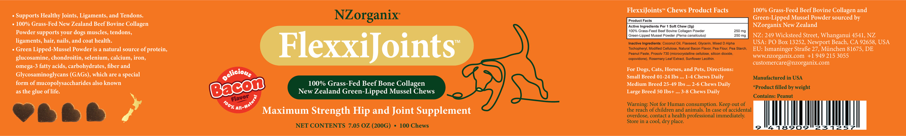 NZorganix FlexxiJoints Chews, 100% New Zealand Air-Dried Green Lipped Mussel Chews, Maximum Strength Hip and Joint Supplement.