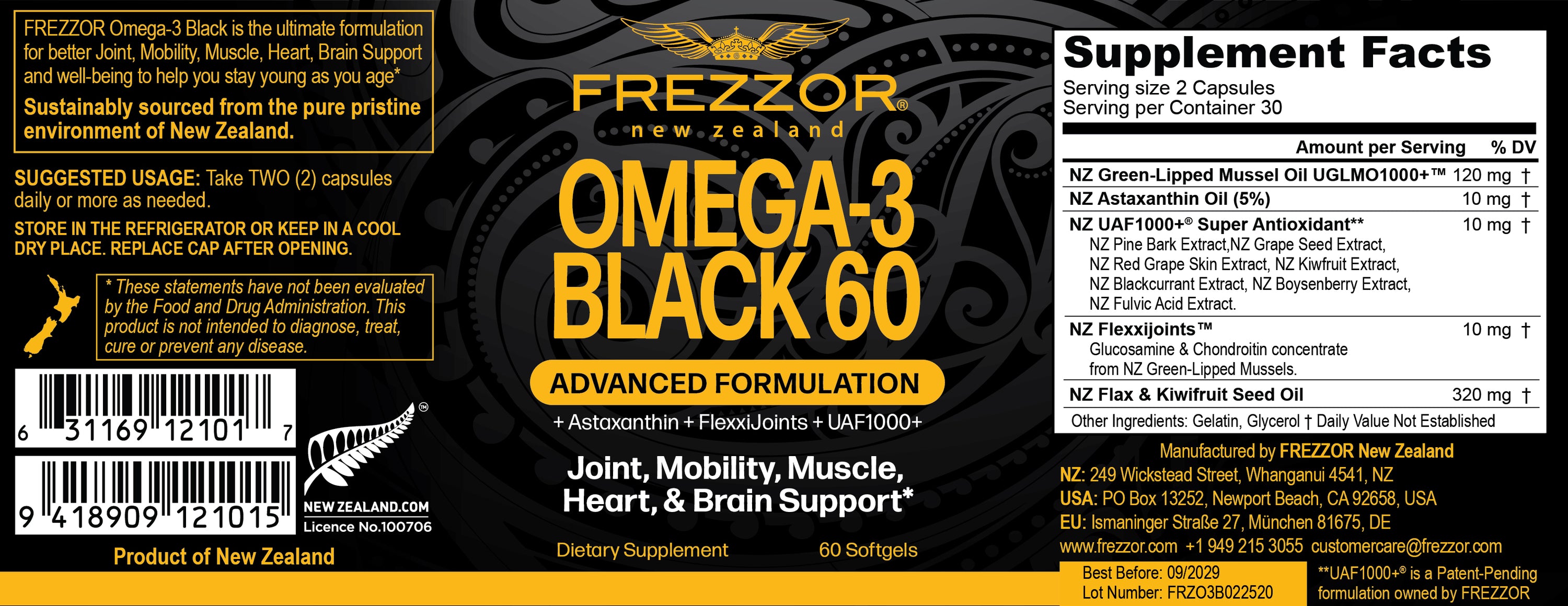 This innovation became the foundation of FREZZOR Omega-3 Black—a breakthrough supplement combining New Zealand’s most potent marine lipids with FREZZOR’s exclusive UAF1000+ super-antioxidant blend, delivering 53 times more antioxidant protection than standard fish oil.