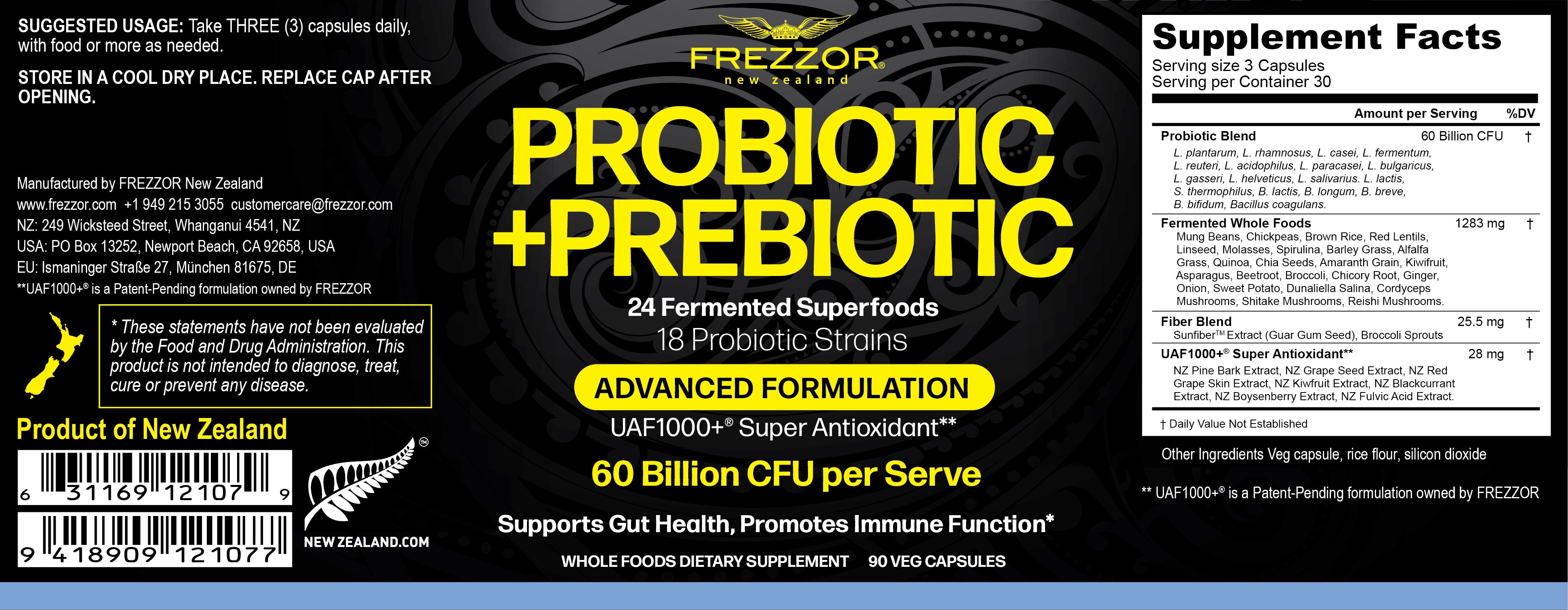FREZZOR PROBIOTIC +PREBIOTIC is the perfect blend of advanced probiotics and fermented whole foods.