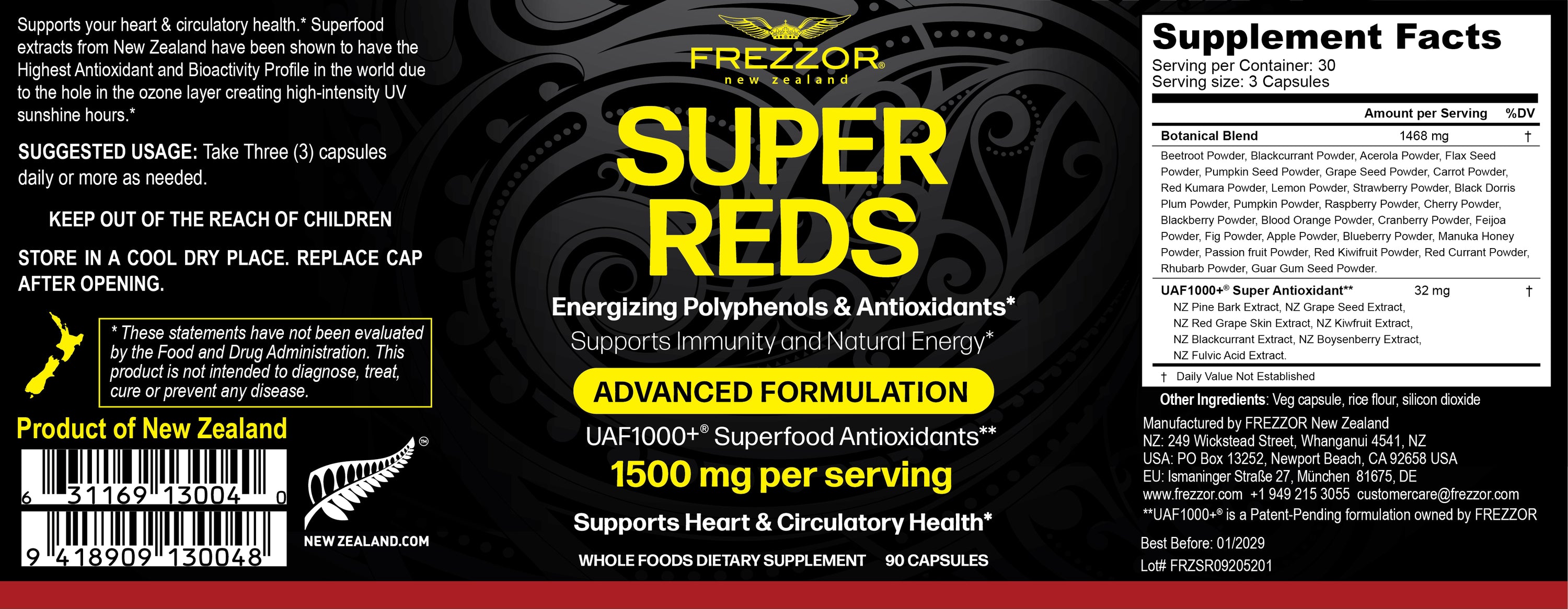 Boost your energy levels, promotes a healthy heart and circulation and supports your healthy immune system. FREZZOR SUPER REDS capsules contain 22 New Zealand grown antioxidant-rich superfoods and berries.