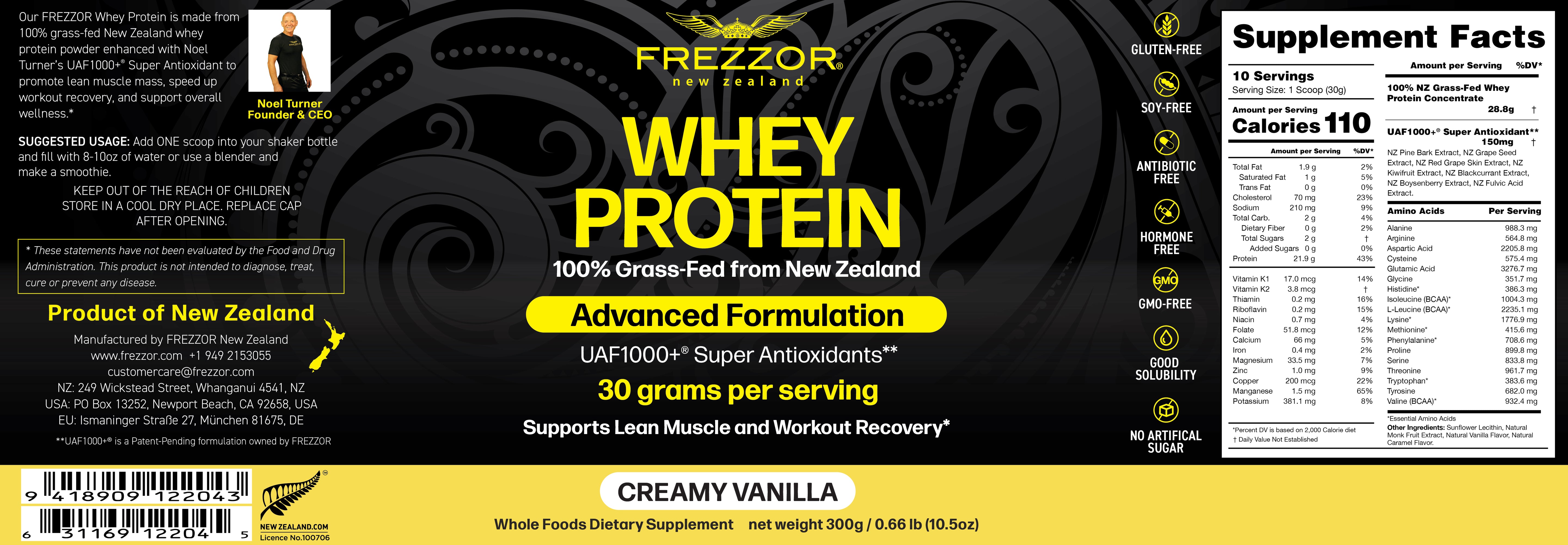 Our FREZZOR WHEY PROTEIN POWDER is free from gluten, hormones, genetic engineering and antibiotics.